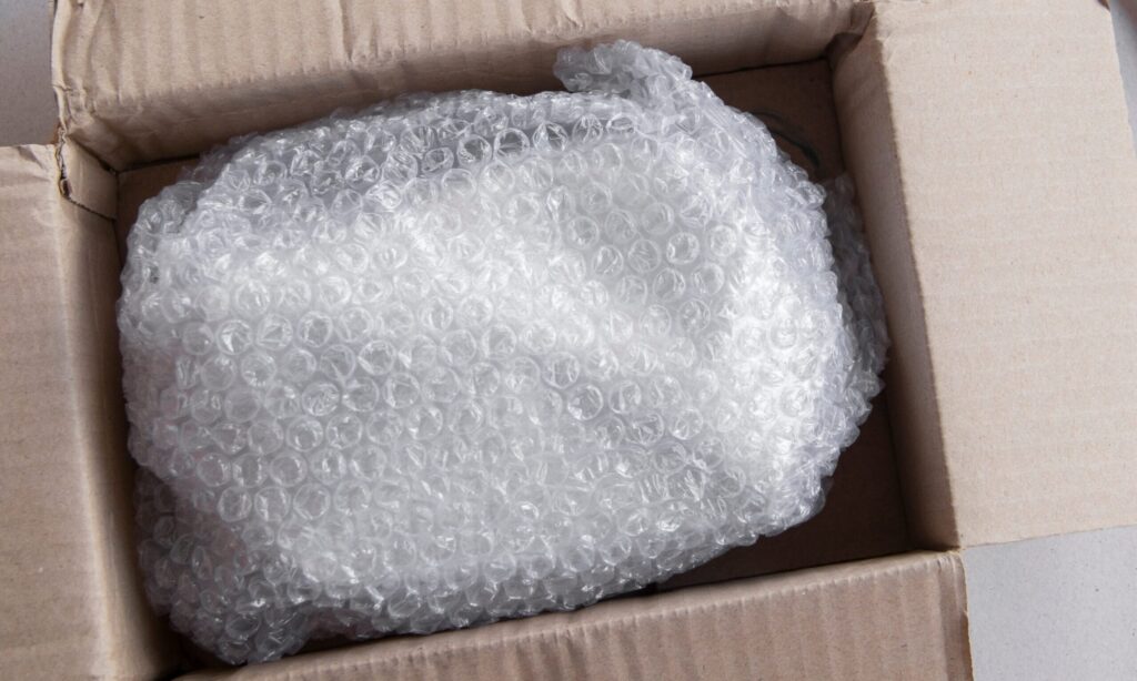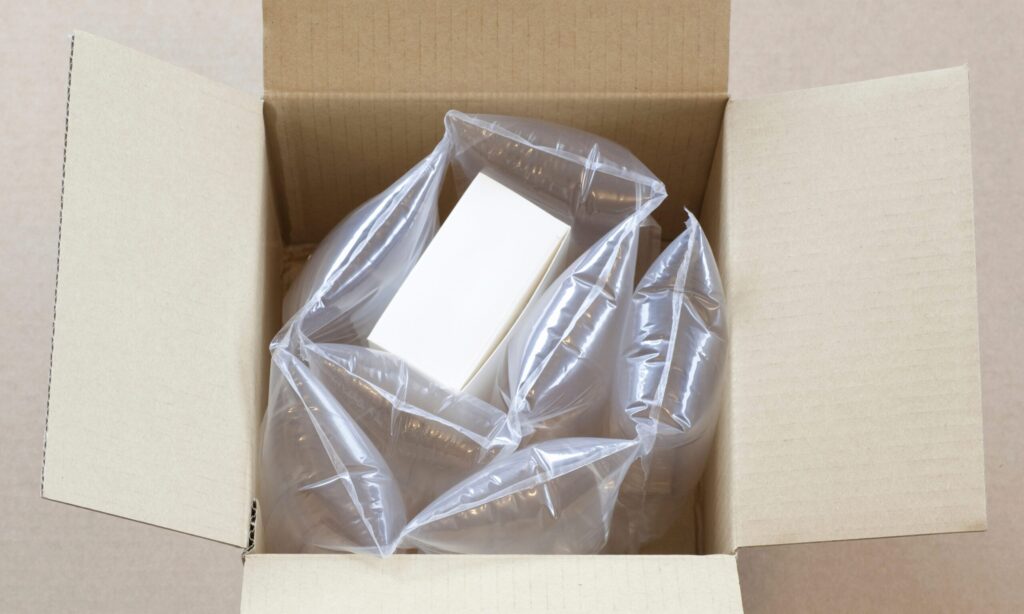商品全体をエアクッションや波段ボールで覆い、粘着テープで固定します。緩衝材から商品がはみ出さないよう、全面をしっかりと包んでください。